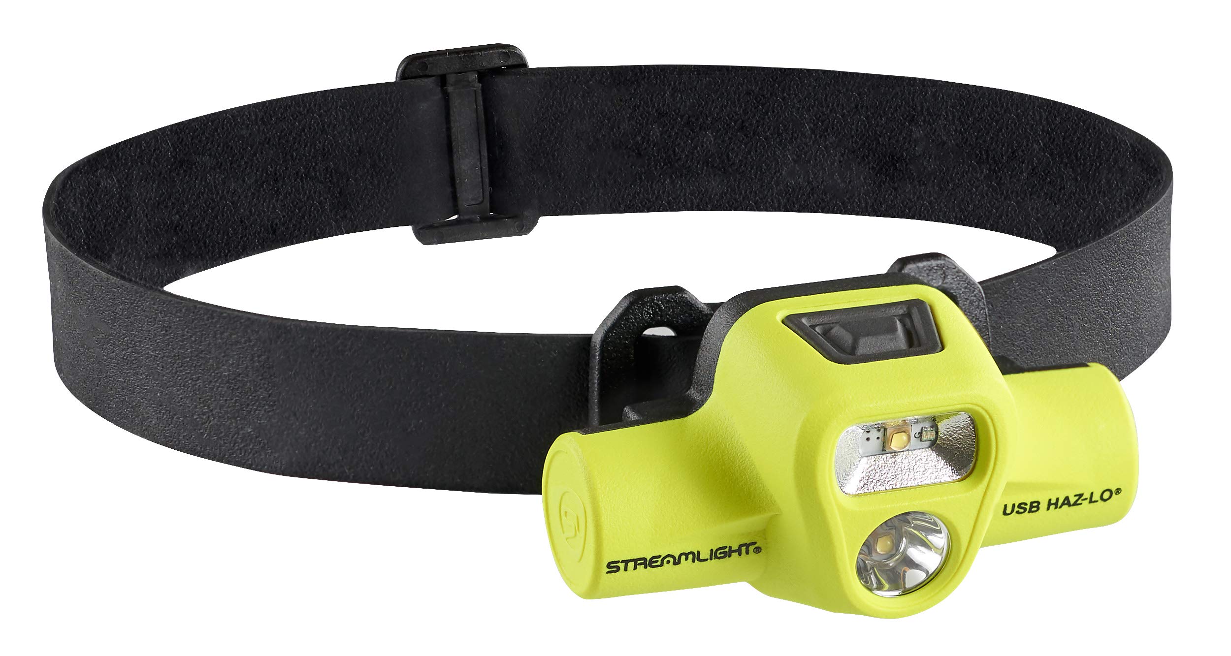 Streamlight 61463 USB HAZ-LO 250-Lumen Intrinsically Safe Headlamp with 120V AC Charging System and Cradle, Elastic Head Strap, Rubber Hard Hat Strap, and 3M Dual Lock Fasteners, Yellow